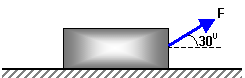 12 - Uma força F = 100 N, inclinada de em relação à horizontal, puxa um corpo de 20 kg sobre uma superfície horizontal com coeficiente de atrito cinético igual a 0,2. A cada segundo o corpo sofre uma variação de velocidade igual a: