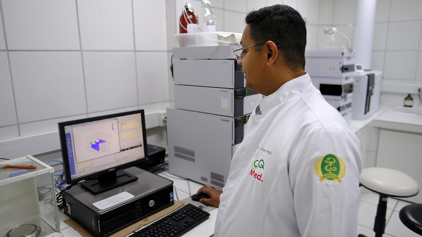 Fabio de Souza, José Venancio e Cícero Aragão no Laboratório de Cobtrole de Qualidade de Medicamentos – Foto: Cícero Oliveira – Agecom/UFRN